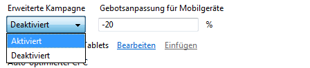 - Gebotsanpassungen für Mobilgeräte bei erweiterten Kampagnen