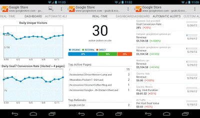 Google hebt vor allem die Echtzeit-Anzeige hervor. Mit der App sehen Sie, ähnlich wie in der Web-Oberfläche, wie viele Besucher sich gerade auf Ihrer Seite befinden und welche Seiten die größte Aktivität haben.